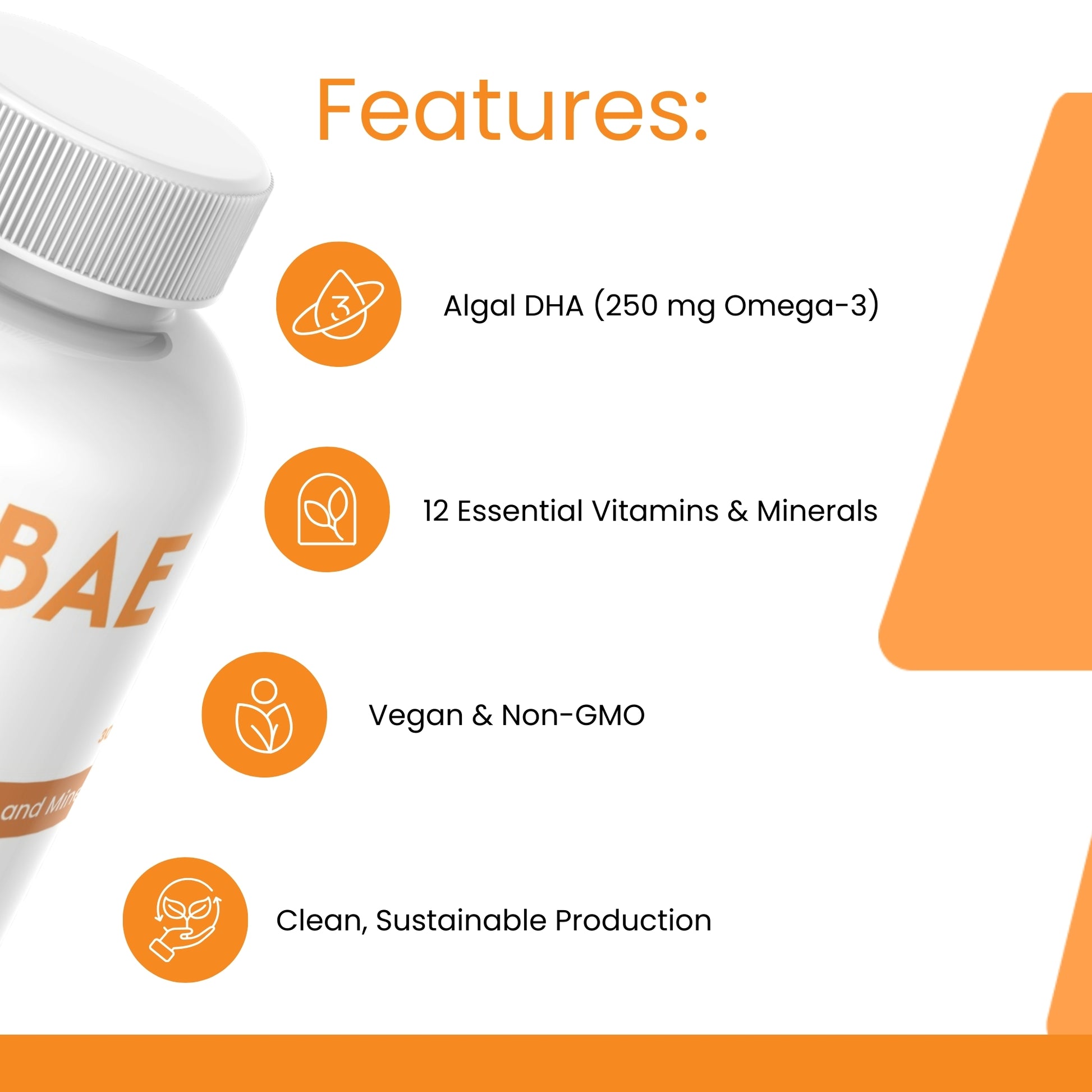 Algal DHA (250 mg): Pure focus, fueled by plants.